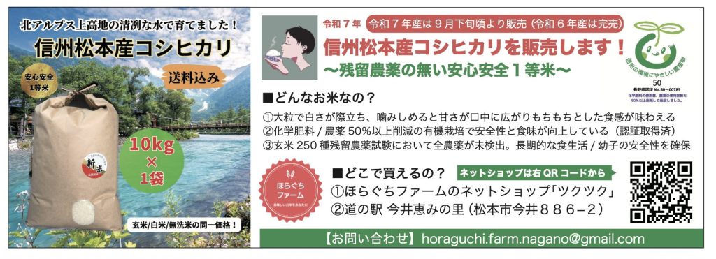 安心安全についても、根拠は示せるという。残留農薬 種、放射性物質やカドミウムの有無の検査を実施。さらに、県から「信州の環境にやさしい農産物認証」を受けている。